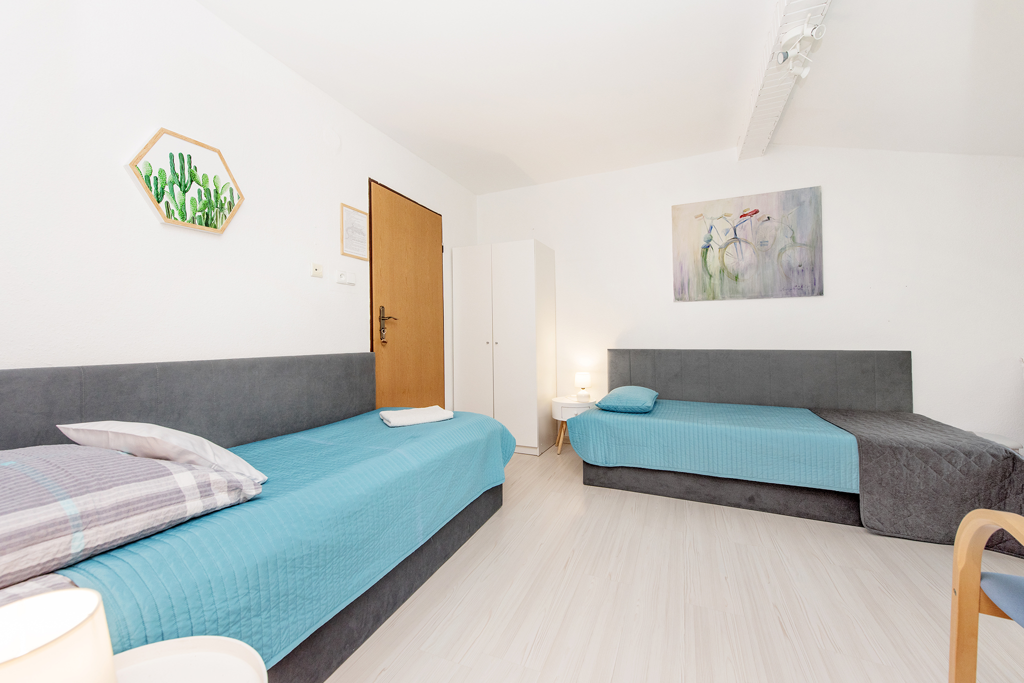 - 2 pojedyncze łóżka 90x200 z tapicerowanymi zagłówkami