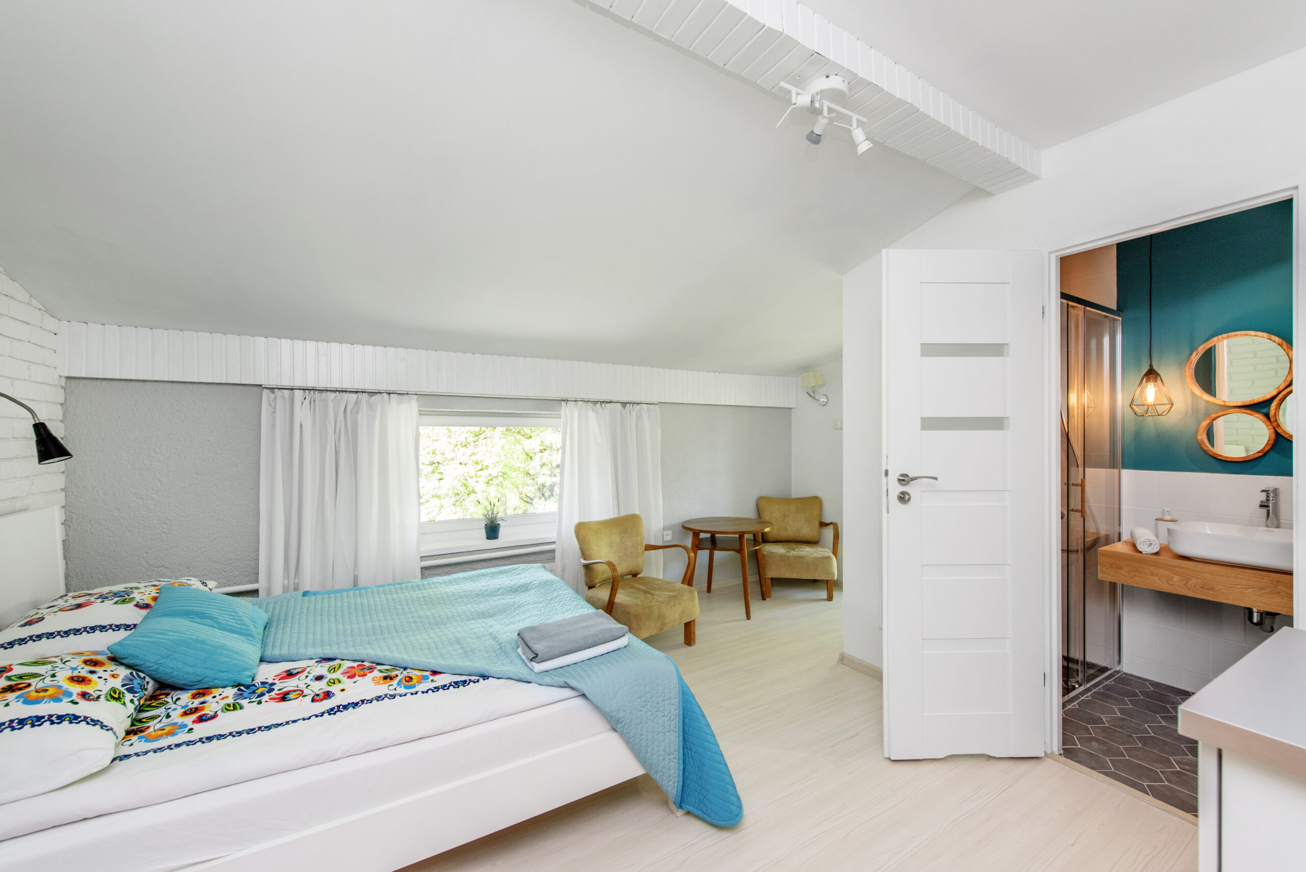 - Osobne wejście z korytarza + wewnętrzne przejście do pokoju nr 4