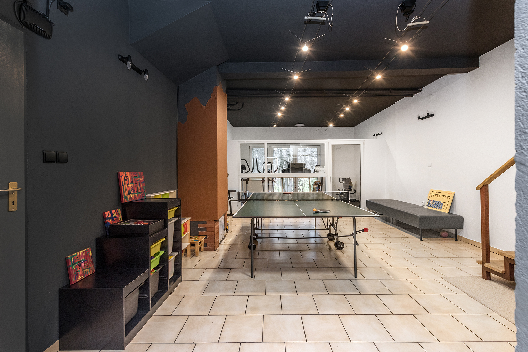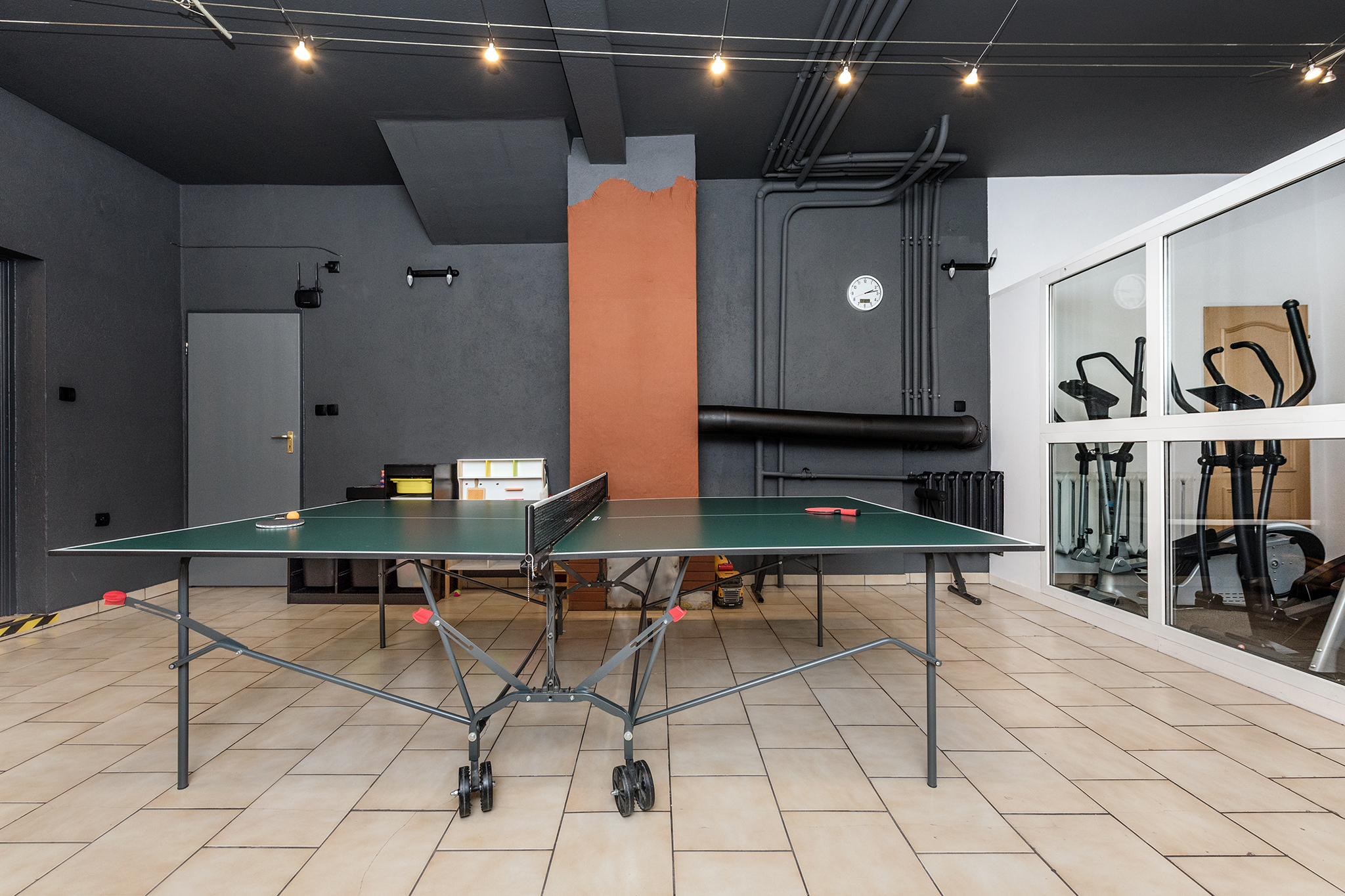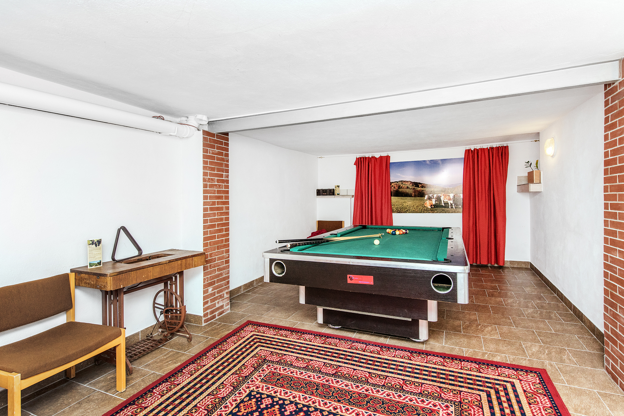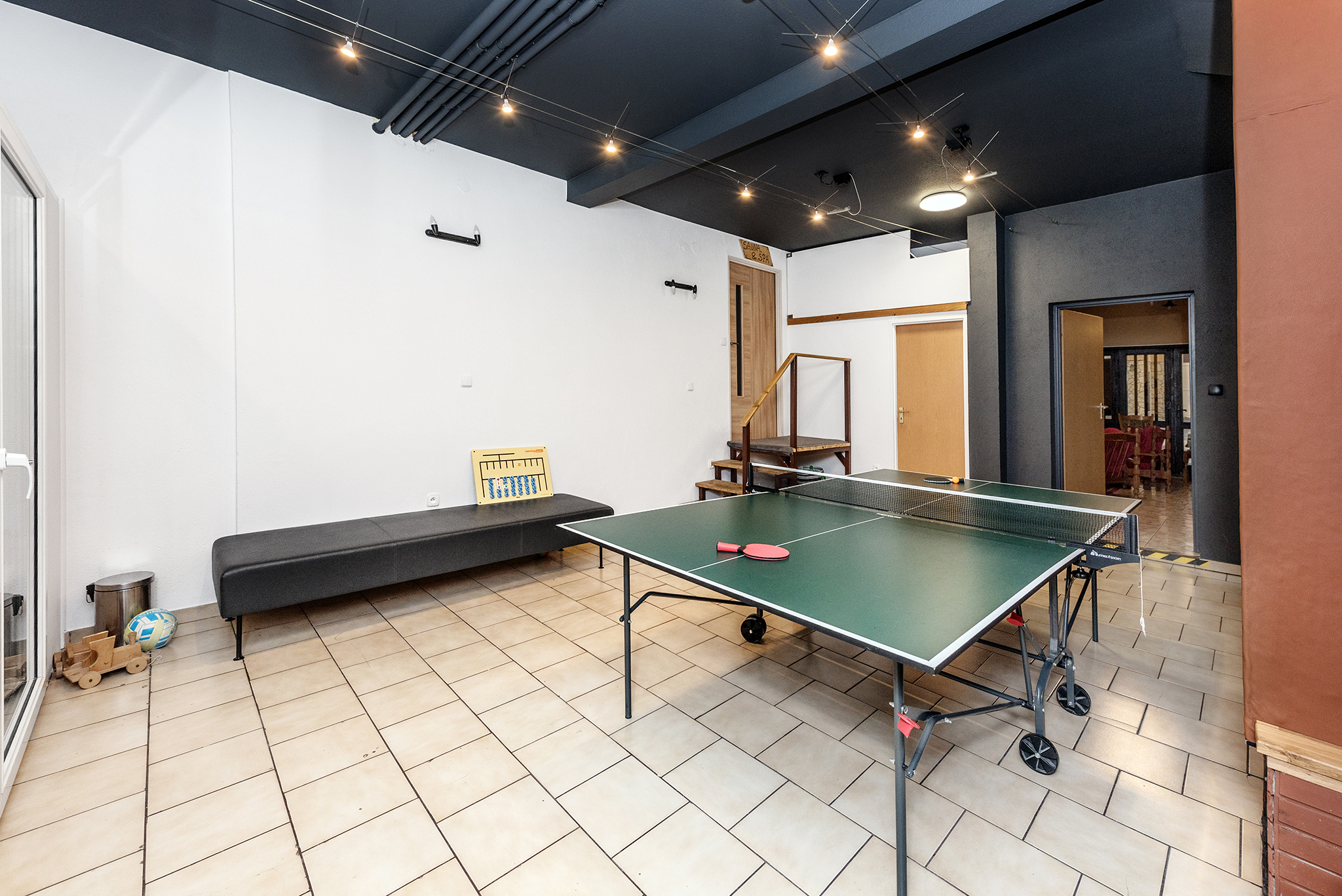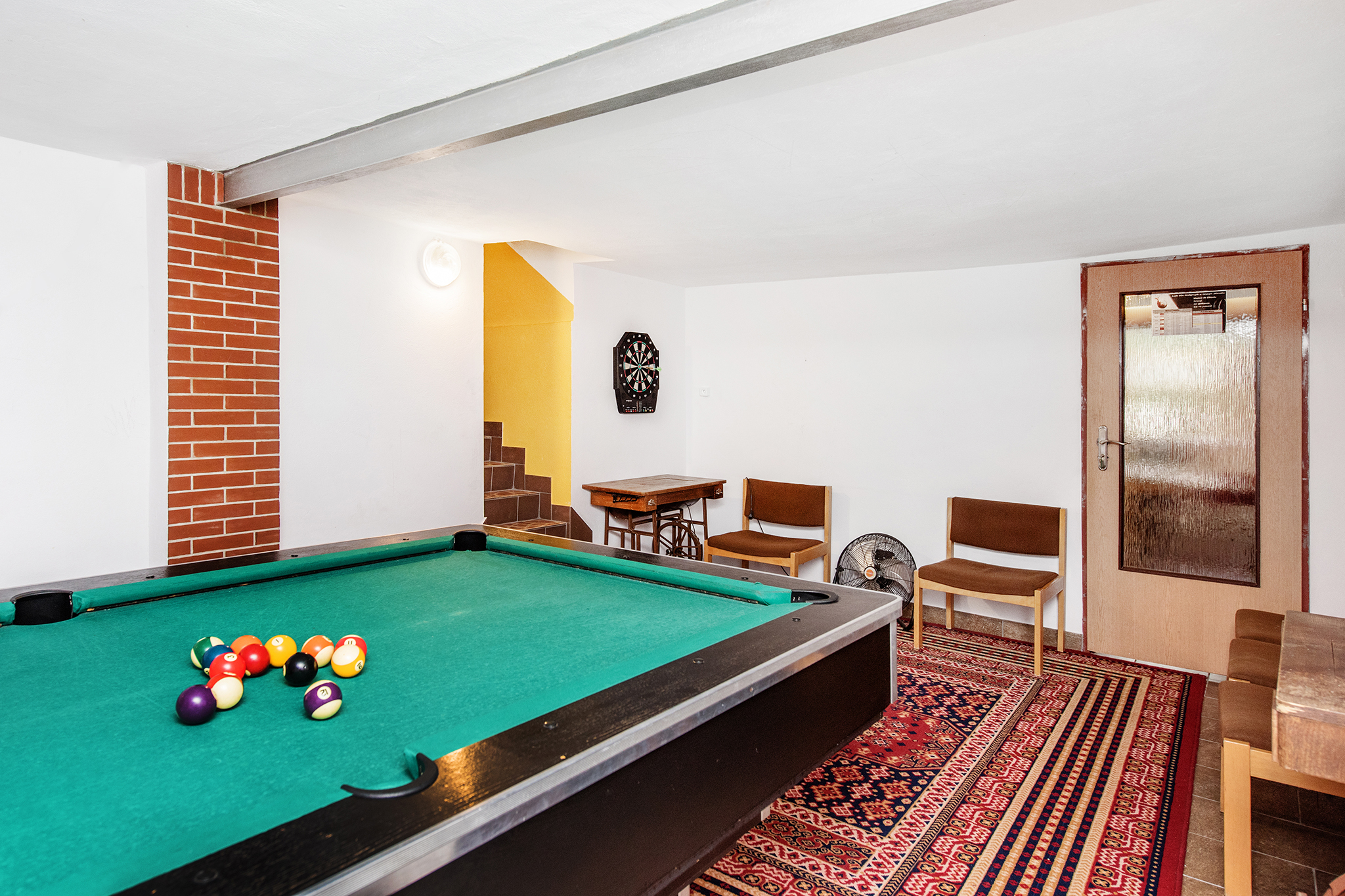 Klimatyczne i chłodne pomieszczenie z profesjonalnym stołem bilardowym. Miękkie oświetlenie i wyciszenie wnętrza sprawia, że to świetne miejsce na wieczorne rozgrywki w gronie znajomych czy rodziny.