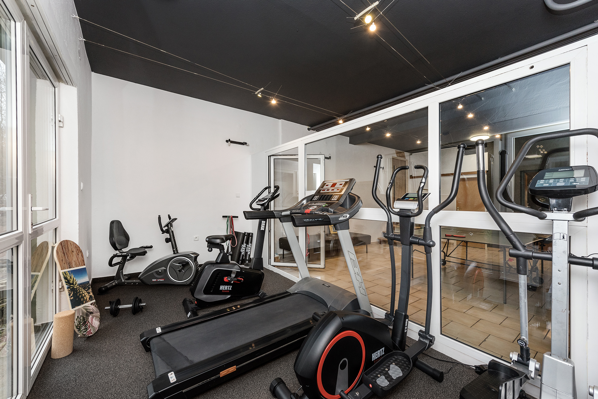 - Przeszklone fitness widoczne z głównego pomieszczenia