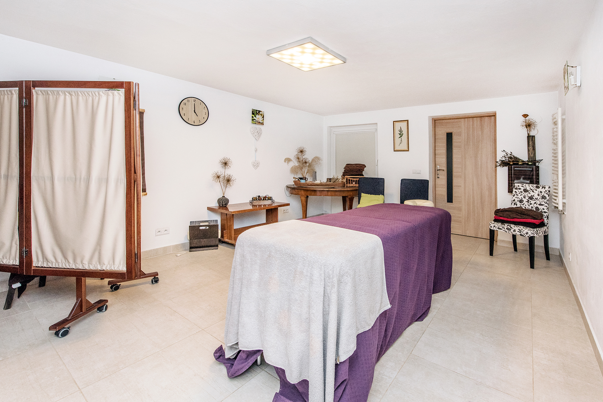 - Gabinet masażu z profesjonalnym łóżkiem i akcesoriami