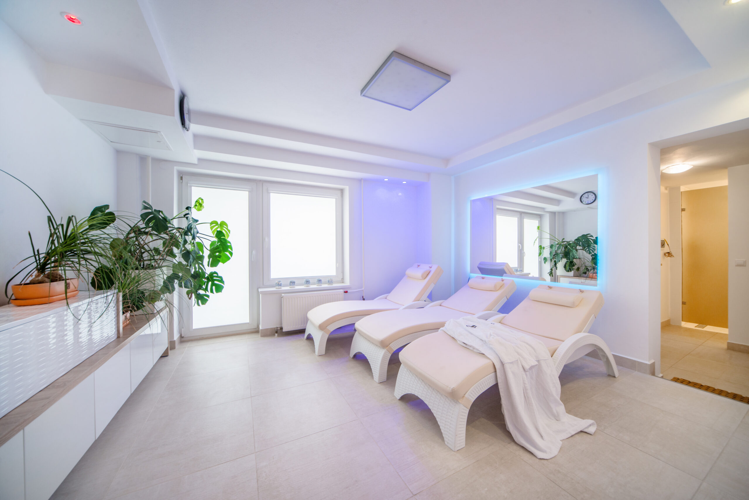 - Pokój wypoczynkowy z leżakami i kojącym oświetleniem LED